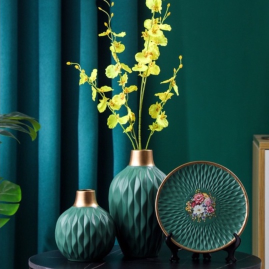Nhà cửa & Đời sống > Trang trí nhà cửa > Bình trang trí || set 3 món bình trang trí màu xanh đậm sang trọng( không kèm hoa )Còn hàng