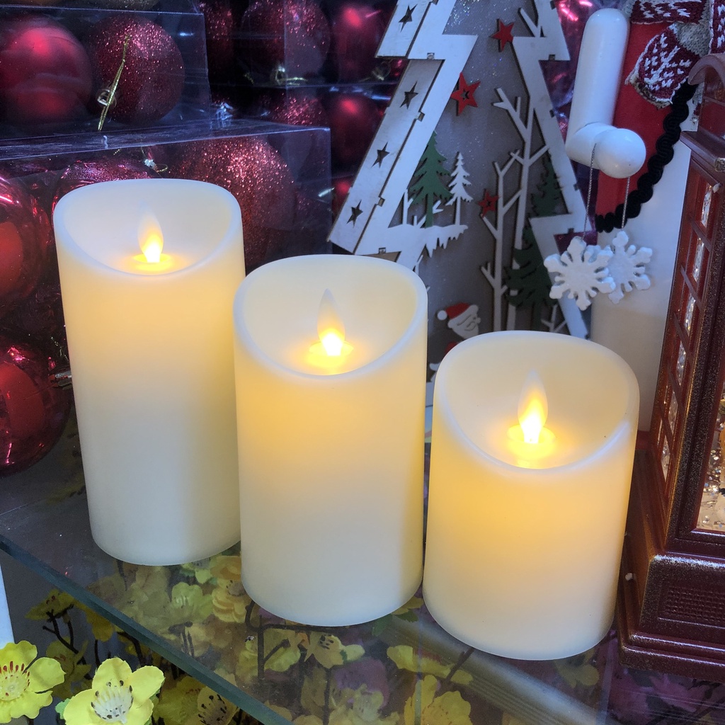 Set 3 nến điện tử trang trí Giáng sinh Noel decor nhà cửa