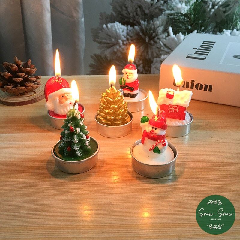 Set 3 nến thơm Giáng sinh Noel dễ thương nhiều mẫu siêu xinh có kèm đế đựng nến tiện lợi