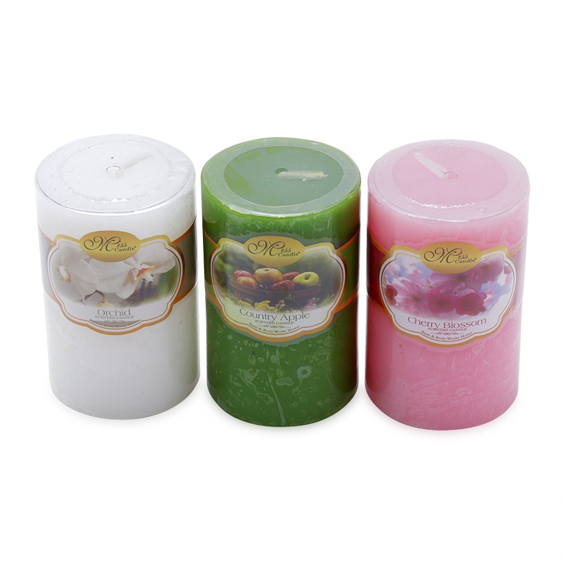 Set 3 nến thơm trụ tròn D5H8 Miss Candle FtraMart NQM0819 (5 x 8 cm) (Trắng-hồng-xanh lá)