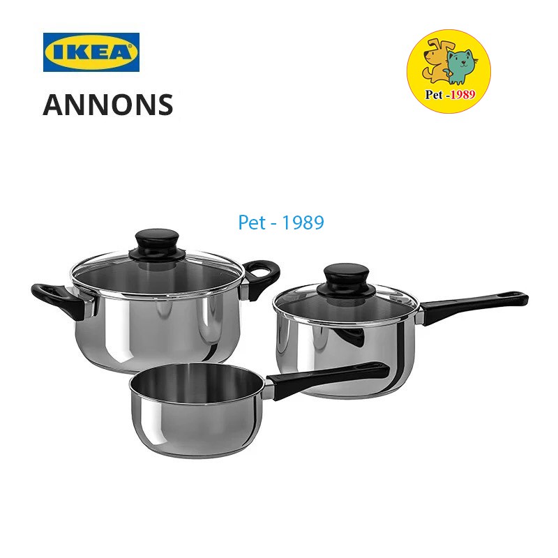 Set 3 Nồi inox ANNONS IKEA dùng cho bếp từ, bếp ga CHÍNH HÃNG Pet-1989
