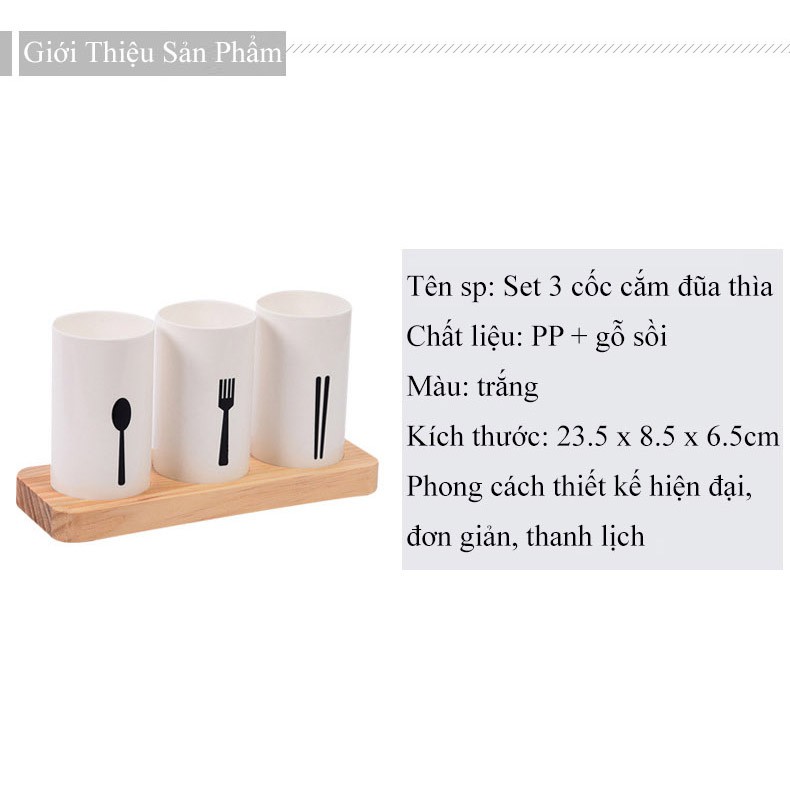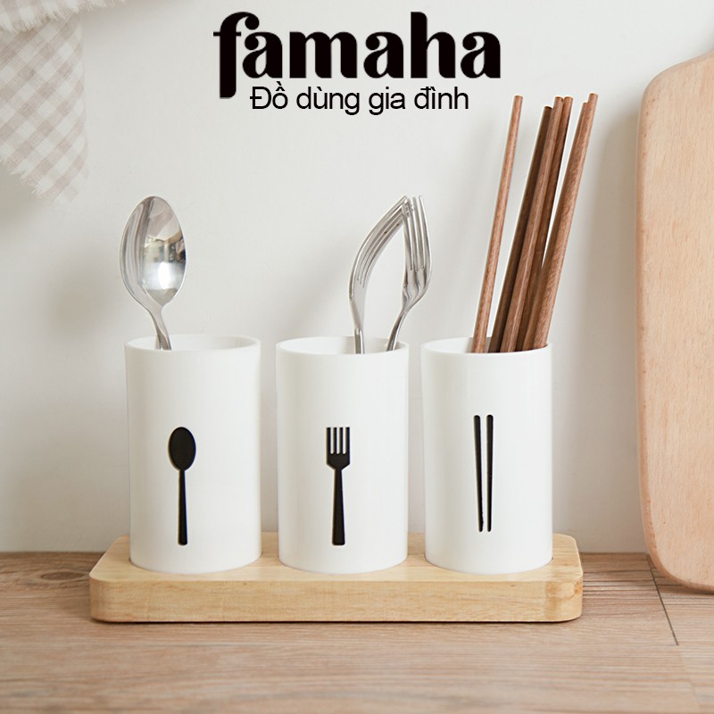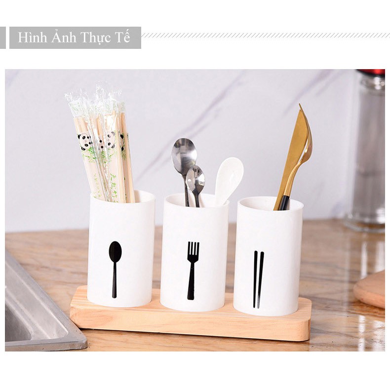 Nhà cửa & Đời sống > Bộ đồ bàn ăn > Bộ dao kéo || SET 3 ống cắm đũa muỗng nhà bếp cao cấp kèm đế gỗ sồi, ống cắm đũa thìa đa năng FAMAHACòn hàng