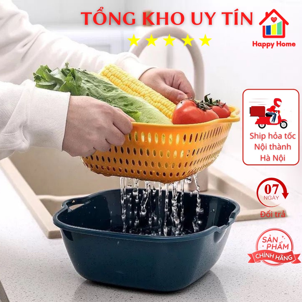 - Thiết kế hai lớp, rổ lỗ thoáng dễ thoát nước. Có thể dùng để rửa rau củ quả dễ dàng.