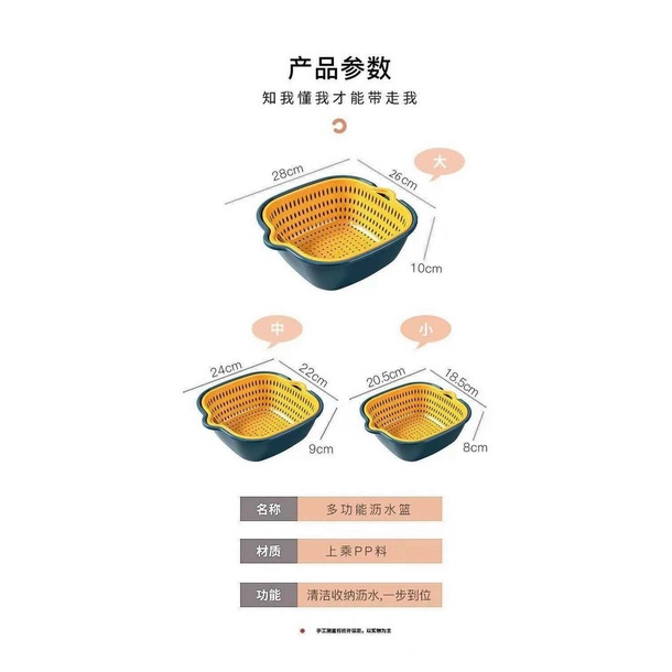 ✅Thiết kế hai lớp, rổ lỗ thoáng dễ thoát nước. Có thể dùng để rửa rau củ quả dễ dàng.