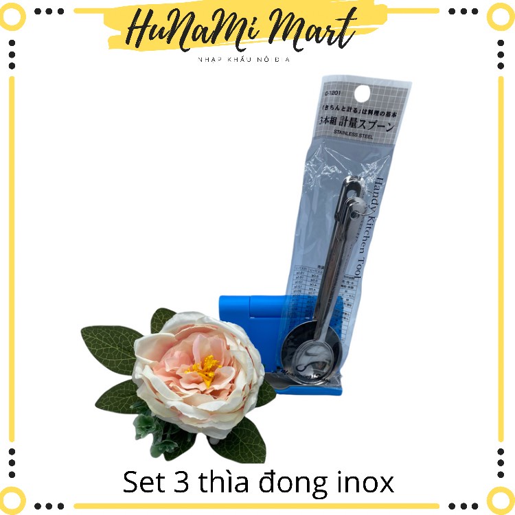 Set 3 thìa đong gia vị bằng inox - nhập khẩu Nhật Bản- Chất liệu: thép không gỉ