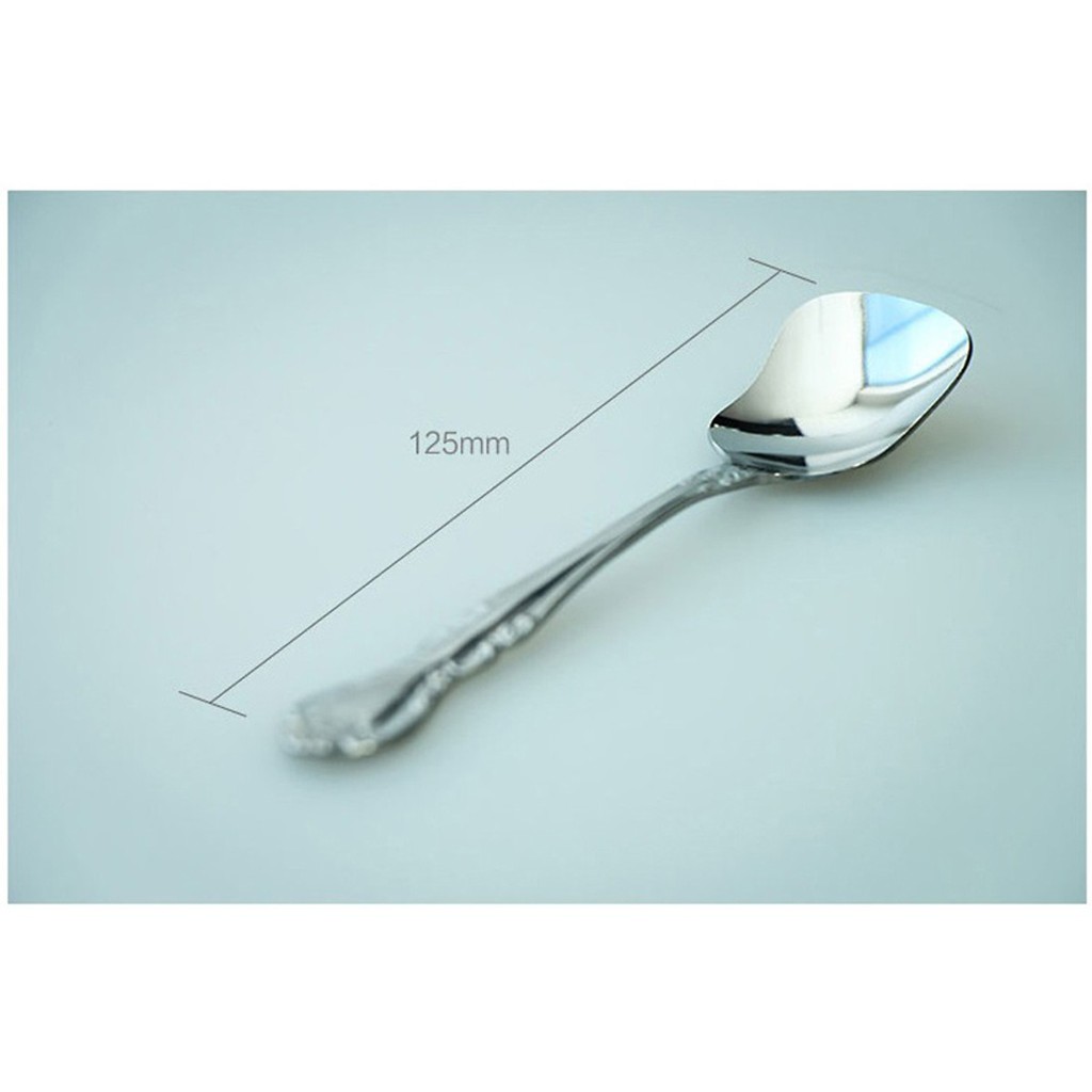 "- Kích thước: chiều dài mỗi thìa 13cm- Chất liệu: Phần tay cầm bằng nhựa, thìa bằng inox sáng bóng. Phần thìa có vỏ bọc bằng nhựa giúp giữ vệ sinh tốt hơn.
