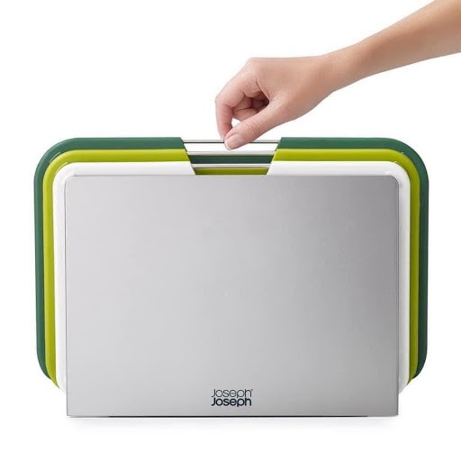 - Thớt kháng khuẩn Joseph Joseph với thiết kế cực đẹp với thanh cầm trên thớt bằng thép không gỉ, dễ dàng chọn thớt cần dùng