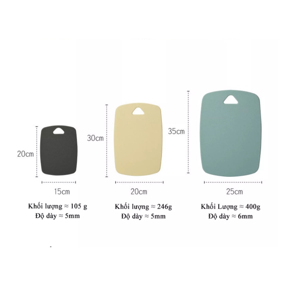 - Kích thước 3 loại thớt: 35x25cm , 30x20cm , 20x15cm
