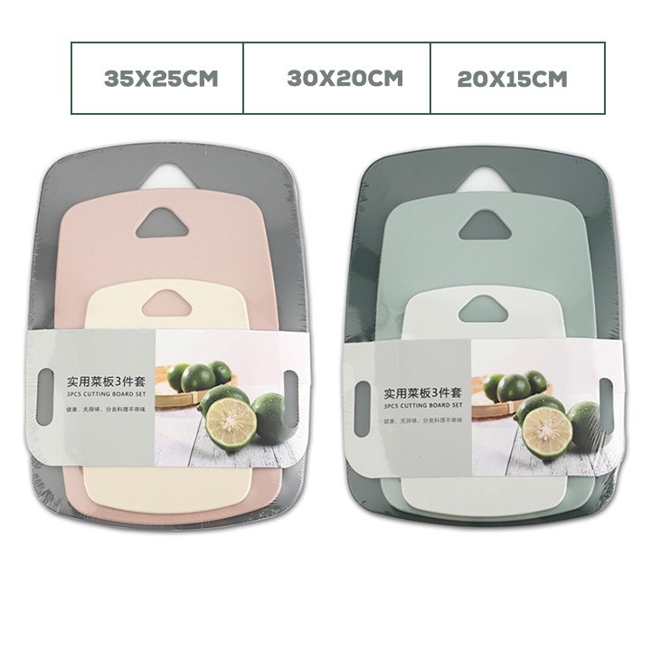 Set 3 thớt nhựa kháng khuẩn, an toàn – Combo 3 thớt nhựa nhiều màu chống nấm mốc 01525