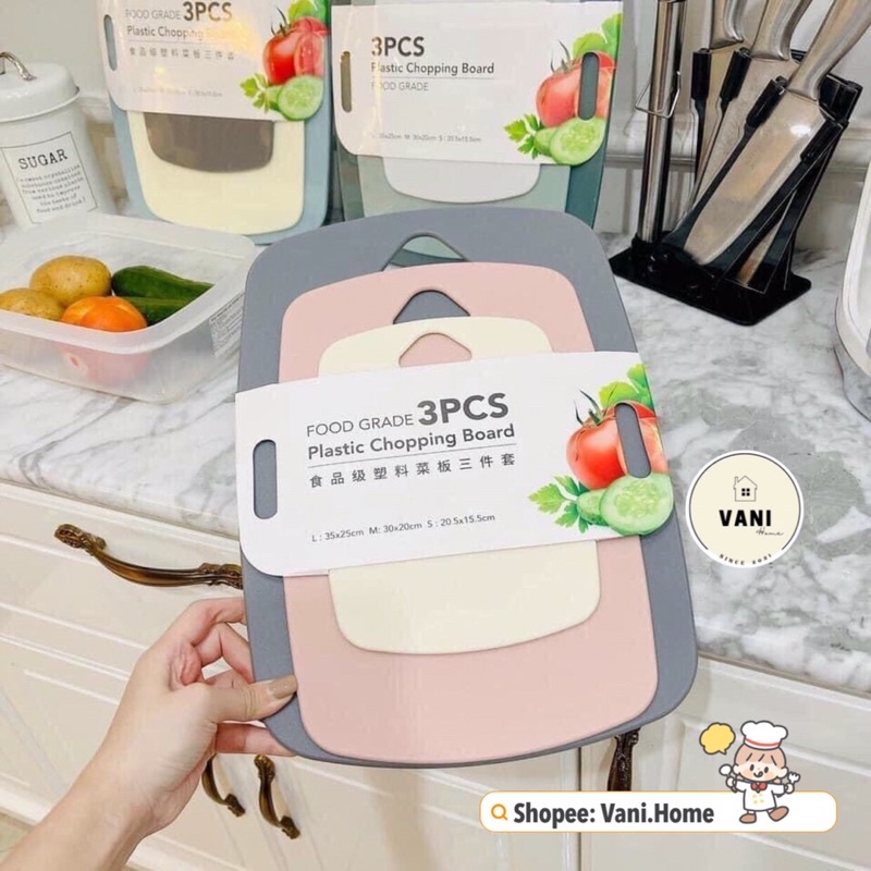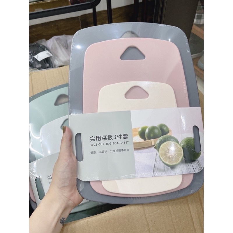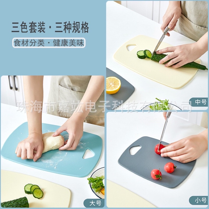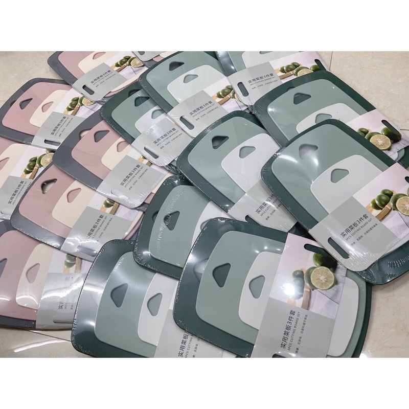 Nhà cửa & Đời sống > Dụng cụ nhà bếp > Thớt || Set 3 thớt nhựa kháng khuẩn chống trầy- Bộ 3 thớt tiện dụng để gọt trái cây, trộn bột, thái đồ sống, đồ chín riêng biệt.Còn hàng