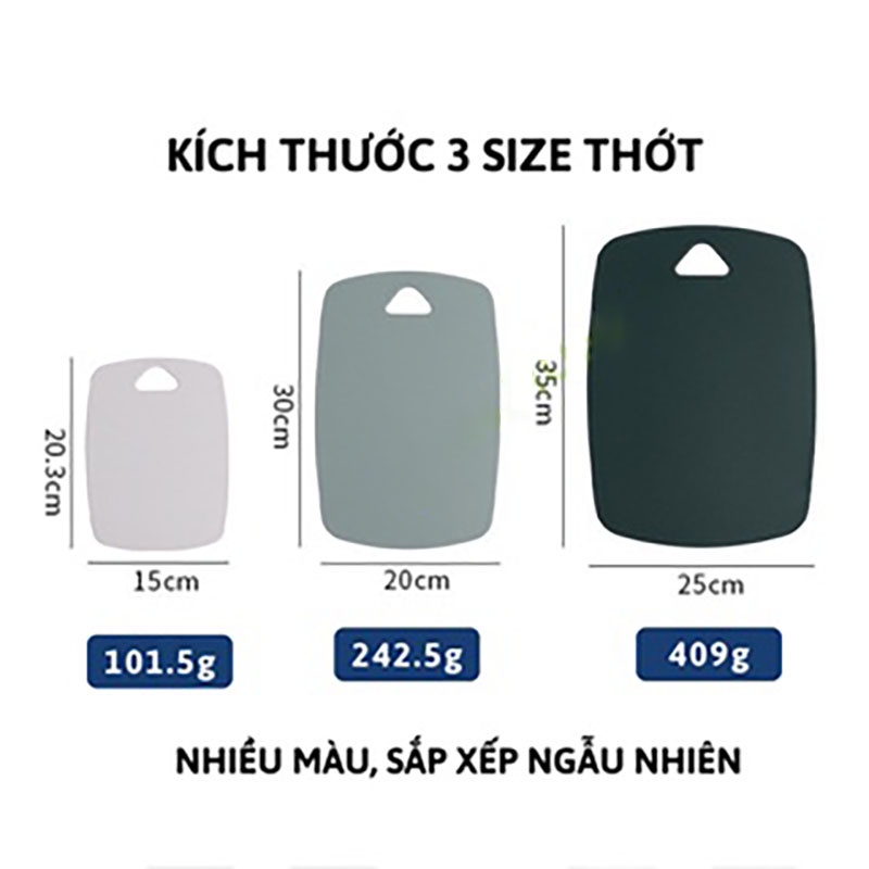 Bộ 3 thớt nhà bếp tiện lợi giúp bạn sử dụng theo từng loại thực phẩm trong nhà bếp: Loại nhỏ có thể dùng để cắt thức ăn cho trẻ, loại lớn dùng cắt trái cây, rau củ và thịt