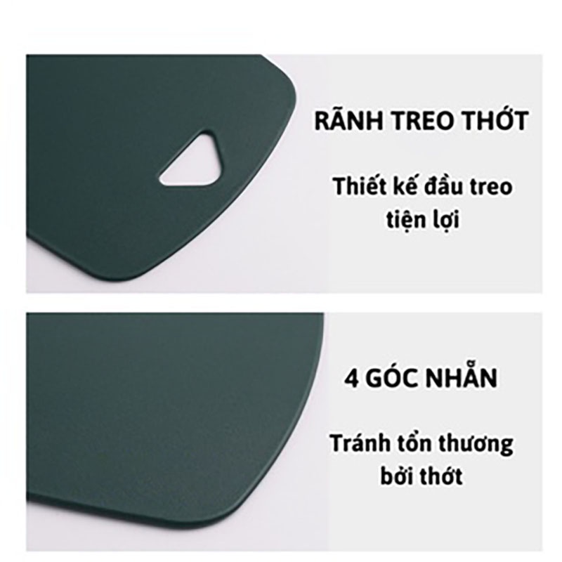 - Bộ thớt được làm từ chất liệu an toàn cho sức khỏe, sử dụng lâu dài không gây mùi khó chịu, rất dễ vệ sinh sau khi sử dụng