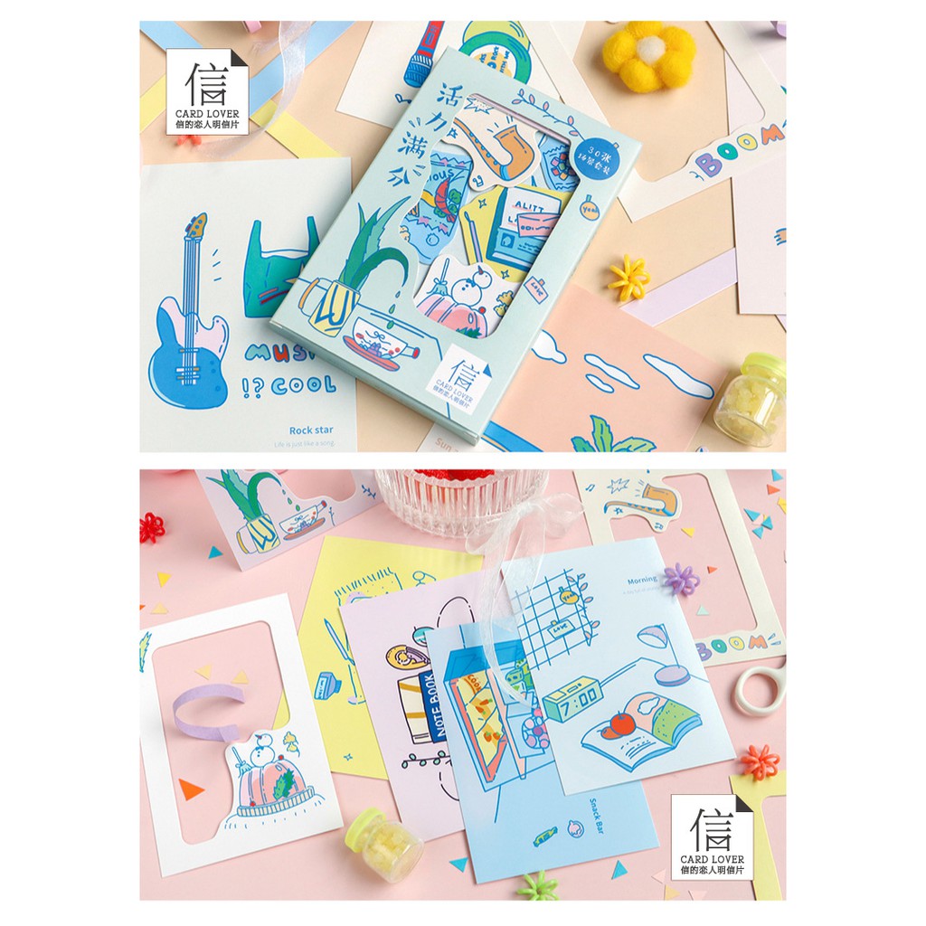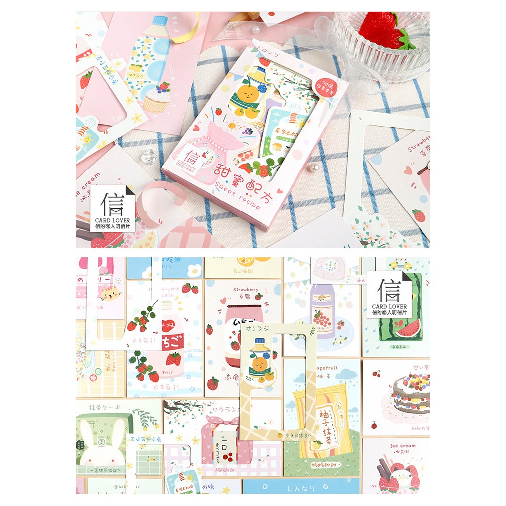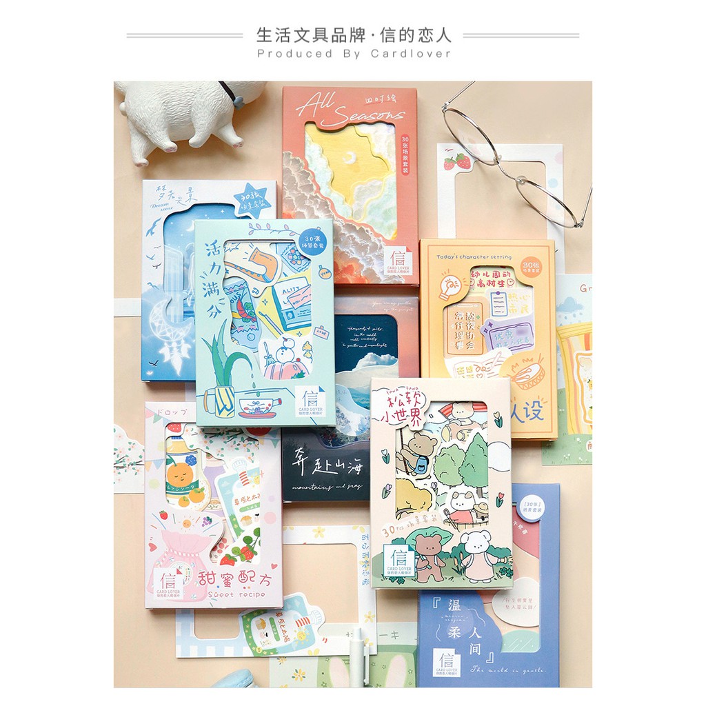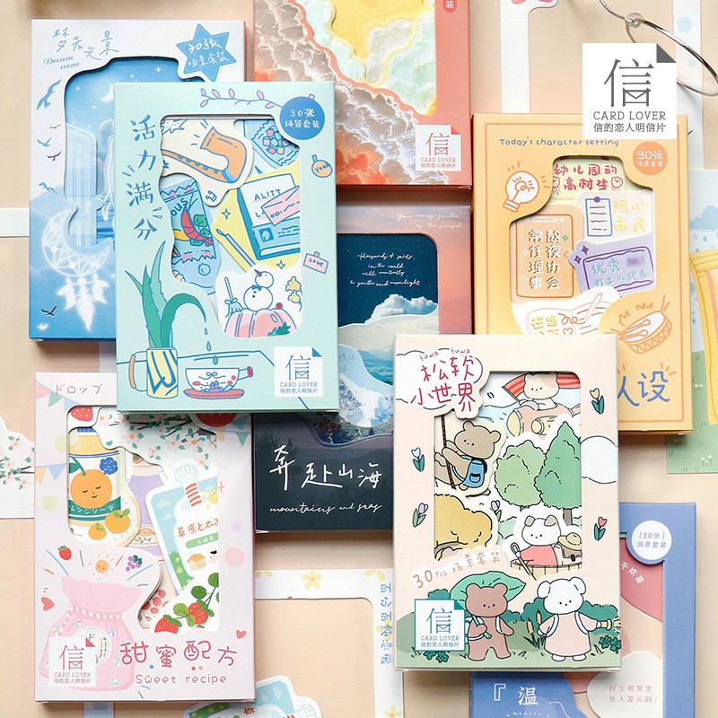 Set 30 Poscard and Cardlover kích thước 143x93mm được sản xuất ở Trung Quốc.Sticker dùng trang trí scrapbook, album ảnh dán, điện thoại, ipad, sổ tay, sổ nhật ký, niêm phong bì thư, trang trí hộp quà, thiệp handmade, hộp bánh và rất nhiều công dụng khác tùy theo sự sáng tạo của bạn.
