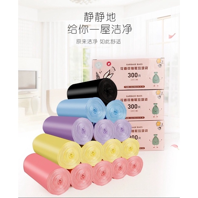 HỘP 10 CUỘN TÚI ĐỰNG RÁC 300 CÁI TỰ PHÂN HUỶ NHIỀU MÀU SẮC SIÊU DAI👉 👉 hộp 300 túi rác đủ màu