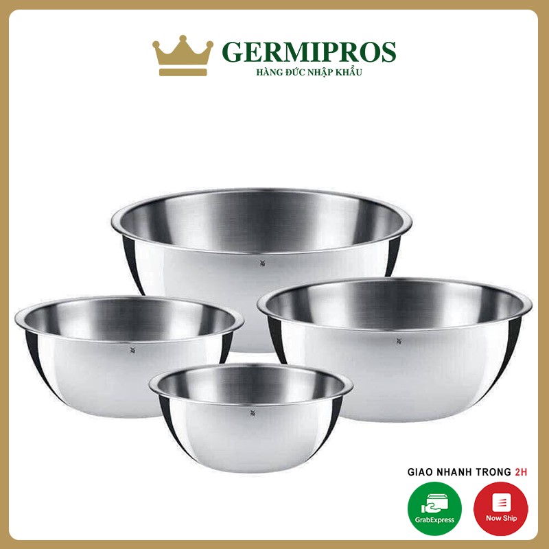 Set 4 thố inox cao cấp của WMF giá đẹpBộ âu WMF Gourmet gồm 4 chiếc âu với các đường kính và dung tích như sau: 1 âu đường kính 16cm (0,75l), 1 âu đường kính 18cm (1l), 1 âu đường kính 22cm (2l), 1 âu đường kính 24cm (2,75l).