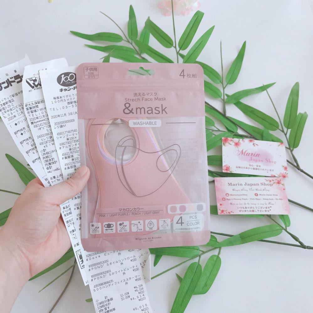 Sét 4 chiếc khẩu trang không viền bằng vải mát cho bé có thể giặt được chống nắng chống UV Nhật Bản