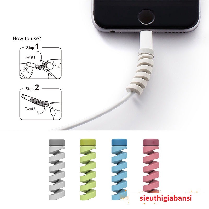 Set 4 dây quấn bảo vệ đầu cáp sạc kiểu dáng xoắn lò xo tiện dụng