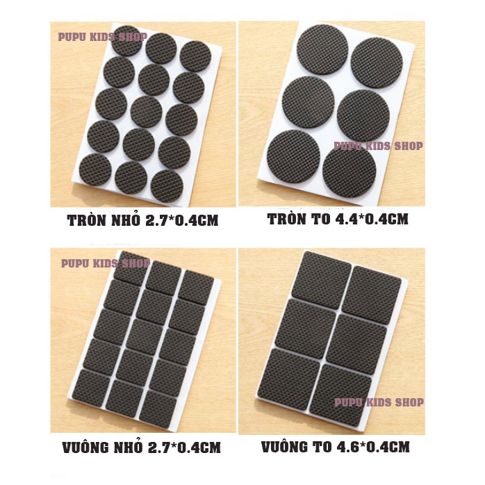 - Công dụng: lót chân bàn, ghế, kệ, cạnh cửa, chân thiết bị điện tử... giúp giảm tiếng ồn, giảm ma sát, chống trơn trượt và bảo bệ bề mặt tiếp xúc với đồ dùng không bị trầy xước.