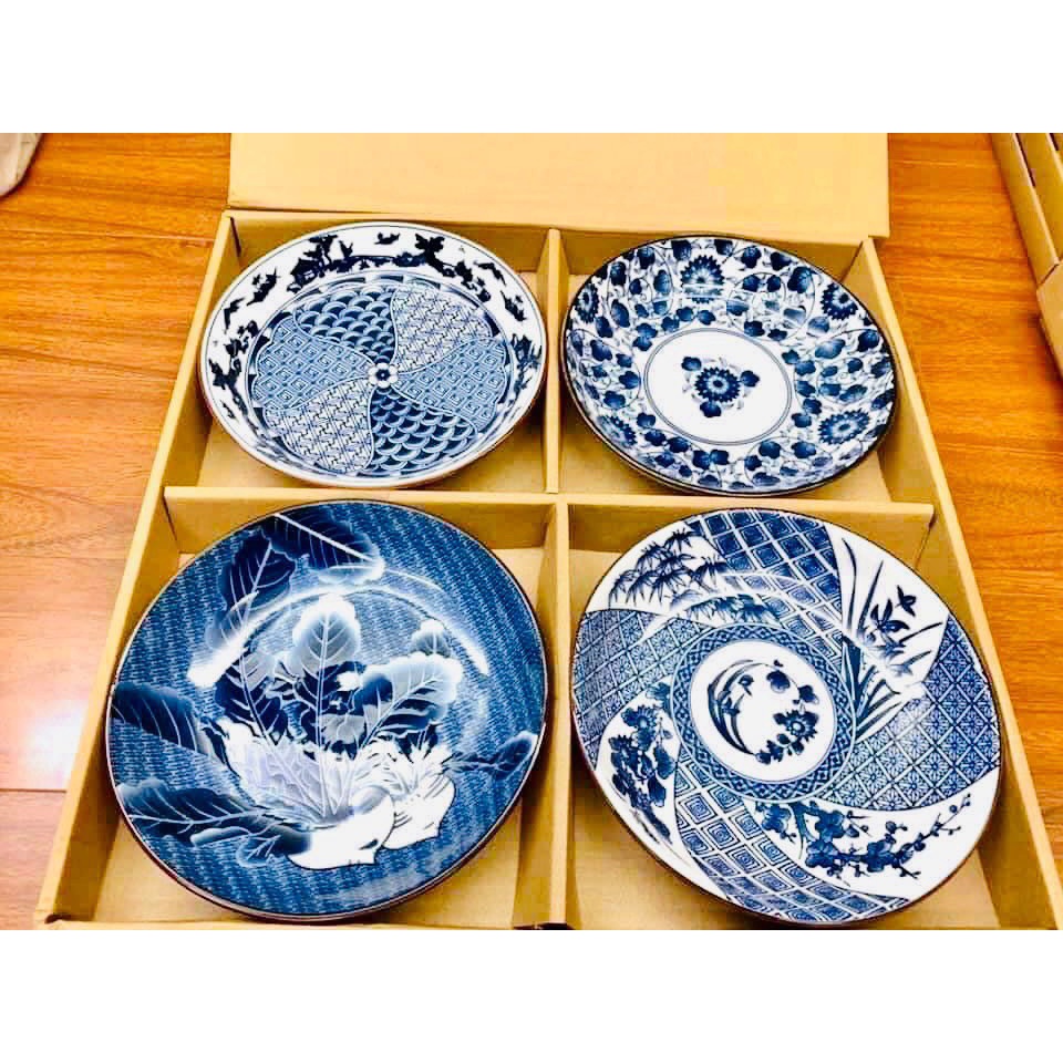 Set 4 đĩa sứ hoa xanh lam phong cách Nhật Bản