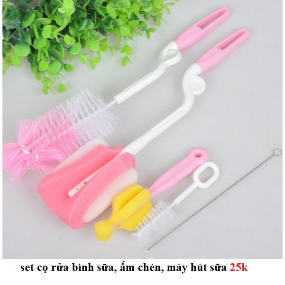 Giới thiệu sản phẩm Bộ dụng cụ cọ rửa bình sữa cho béBộ sản phẩm giúp bạn thuận tiện trong quá trình rửa sạch bình sữa, núm ti, vừa nhanh chóng lại vừa sạch sẽ. Đầu cọ là xốp mút mềm nối chặt với lõi thép có những sợi nhựa mềm, không chứa BPA giúp bạn rửa tẩy sạch hết mảng bám nhưng không làm trầy xước bình sữa. Đi kèm với cọ rửa bình sữa là cọ rửa núm ti thiết kế nhỏ gọn, để làm sạch các váng sữa còn bám lại bên trong núm ti.