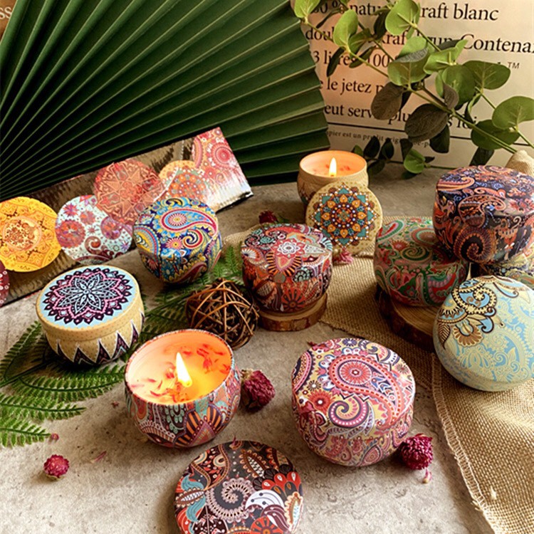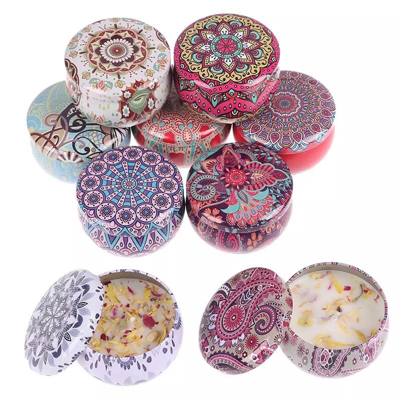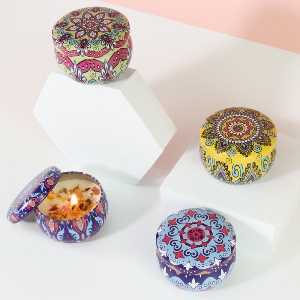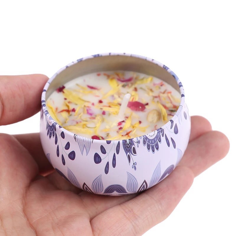 Set 4 Hộp Nến thơm phòng hoa khô thiên nhiên- nến sáp thư giãn hoạ tiết đẹp