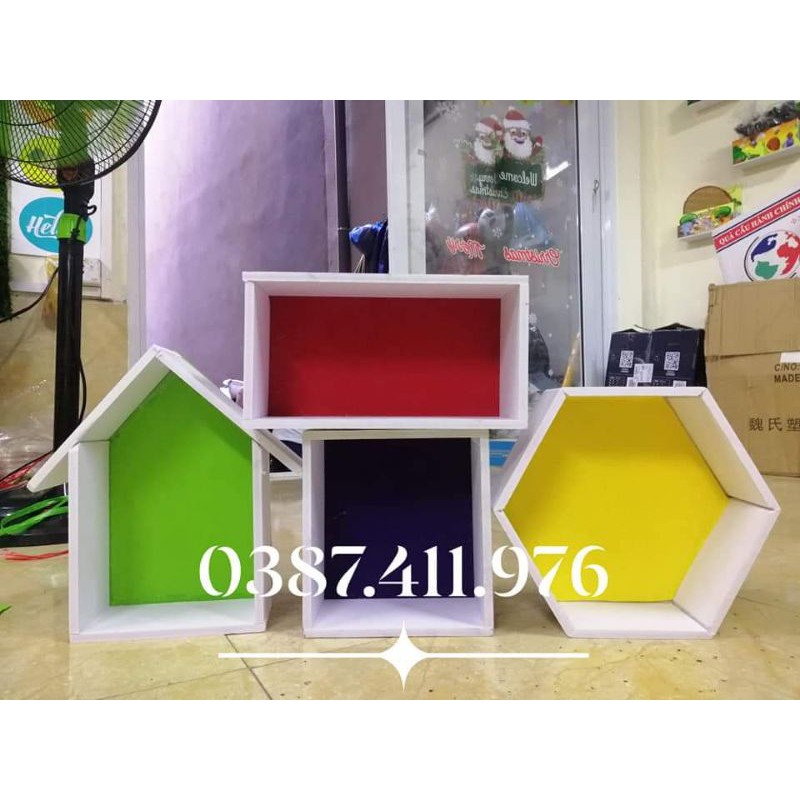 Kệ gửi là 4 hình: Vuông, lục giác, chữ nhật, ngôi nhà 4 màu ngẫu nhiên.