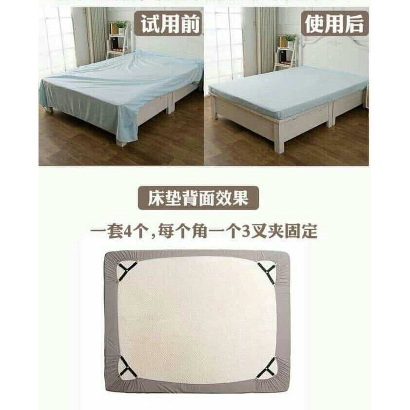 1 set 4 chiếc để chiếc ga lun phẳng phiu, Mng chỉ cần kẹp 3 góc của một kẹp vào góc ga là thoải mái lăn lê k sợ xê dịch nhá :v:️