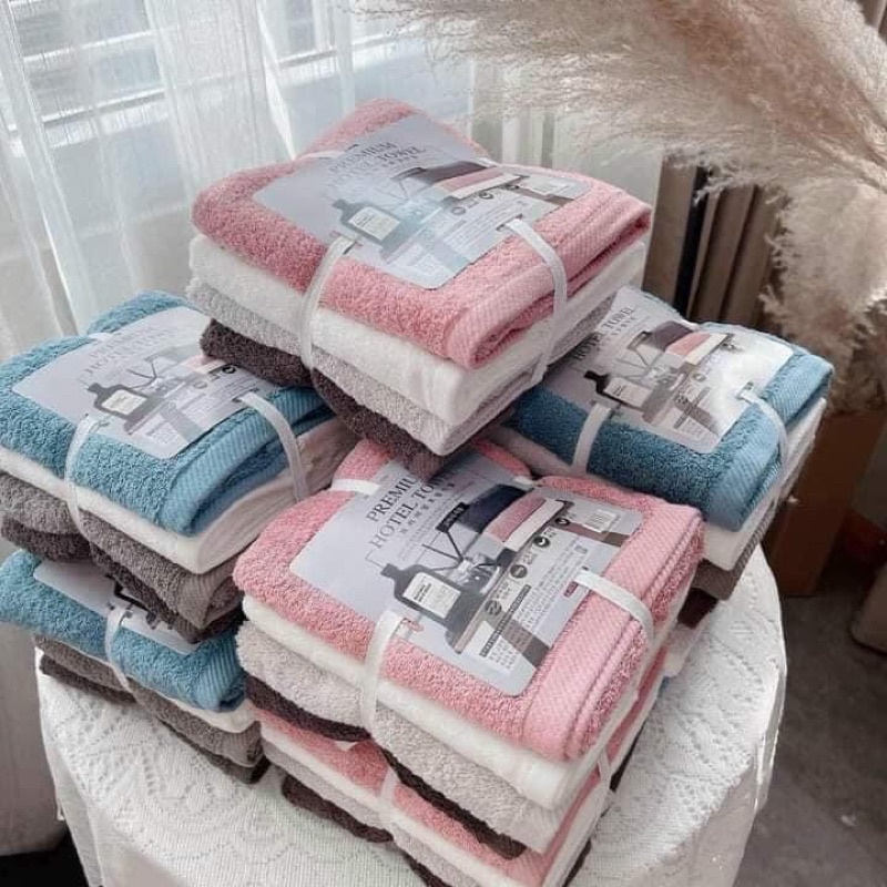 Giới thiệu Set 4 khăn tắm, khăn gội đầu xuất Nhật dư 100% cotton kt 40x80cm