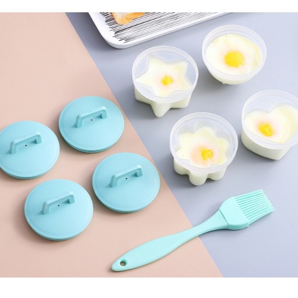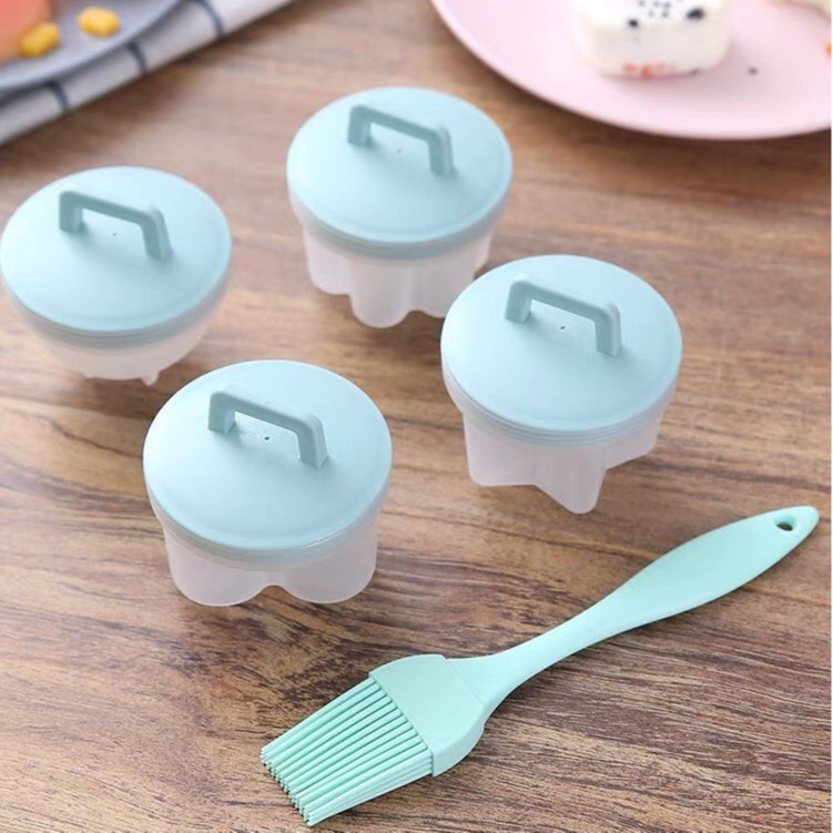 Set 4 khuôn hấp trứng, làm bánh chống dính cho bé (tặng chổi quét dầu) - nắp xoáy