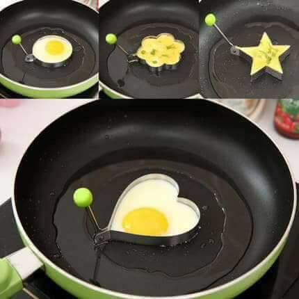 Với bộ dụng cụ này, món trứng ốp của bạn sẽ tuyệt đẹp. Có hình trái tim, hình tròn, hình bông hoa, hình ngôi sao. Sử dụng rất đơn giản, bạn chỉ cần cho khuôn lên chảo, cho dầu vào, rồi đập trứng vô là xong. Cùng 1 chiếc chảo, bạn có thể ốp được 4 quả trứng cùng lúc. Thật tiện phải ko nào?!