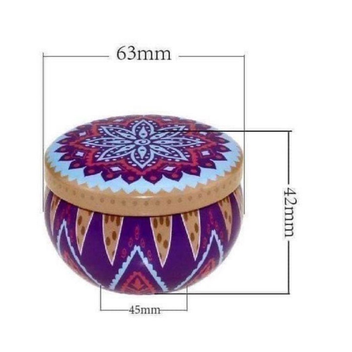 Mỗi lọ nến 80g. Kích thước 6,3*4,2cm. Đựng trong hộp thiếc hoa văn rất đẹp và an toàn