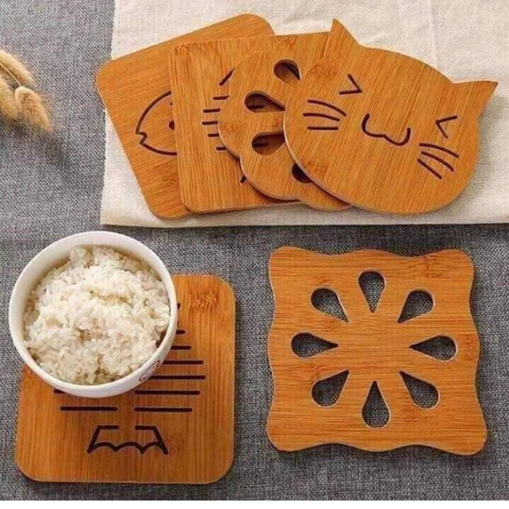 Nhà cửa & Đời sống > Bộ đồ bàn ăn > Khay, tấm lót bàn ăn || Set 4 lót nồi gỗ HOT đế lót xoong chịu nhiệt tốt combo đế lót nhiều hìnhCòn hàng