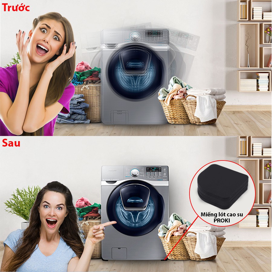 Set 4 miếng lót cao su chống rung lắc, va đập, trơn trượt cho máy giặt, tủ lạnh, bàn ghế, thiết bị điện cực kì tiện lợiTiếng ồn tủ lạnh, tiếng ồn máy giặt làm bạn khó chịu. Máy giặt nhà bạn bị rung lắc cũng ảnh hưởng đến tuổi thọ của thiết bị. Chân Đế Lót Chống Rung giúp bạn cải thiện vấn đề trong gia đình, giúp thiết bị nhà bạn chạy êm ái.
