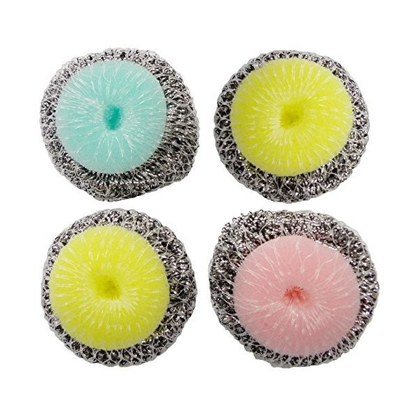 - Chất liệu: mút, inox- Quy cách: set gồm 4 miếng, mỗi miếng gồm các sợi inox bao bên ngoài, phần mút bọc bên trong giúp vừa lau chùi vừa cọ rửa các vết bẩn bám dính trên xoong, nồi đồ dùng nhà bếp