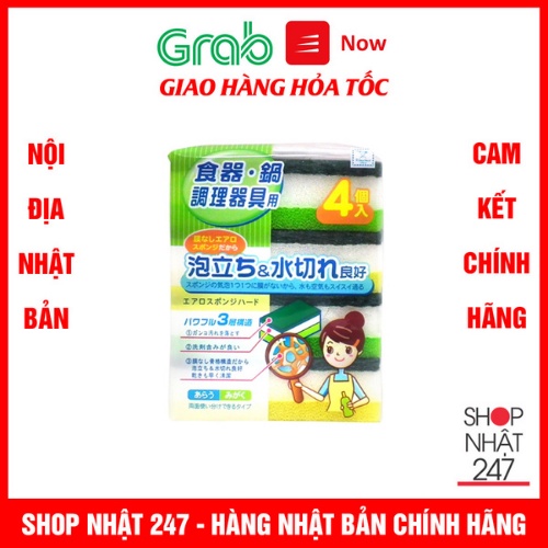 Giới thiệu Set 4 miếng xốp rửa bát một mặt cứng SANADA Nội địa Nhật Bản
