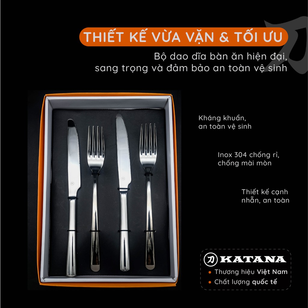 Set 4 món DAO DĨA ăn bít tết, steak KATANA INOX 304 cao cấp, sang trọng - KATA110