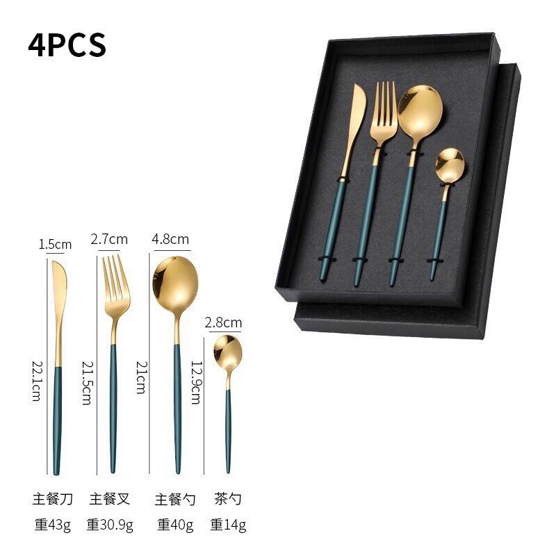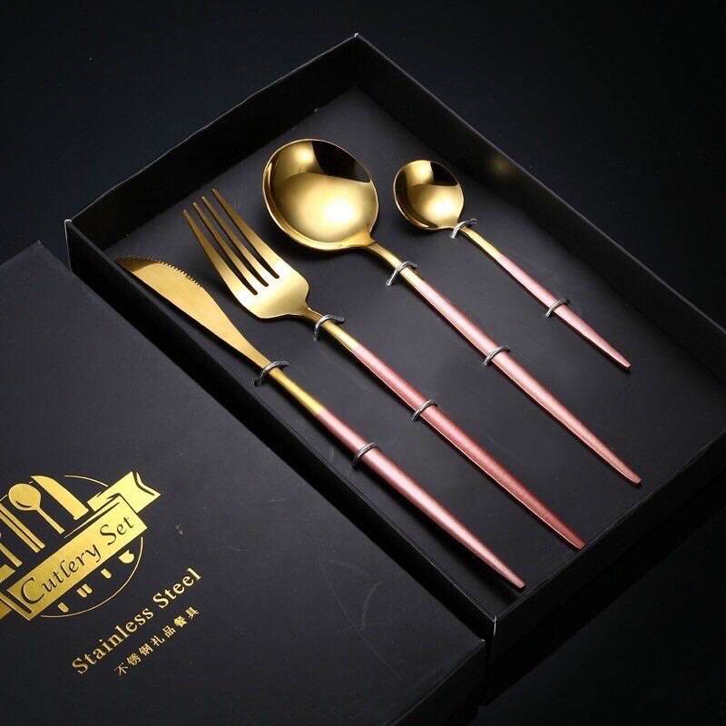 Nhà cửa & Đời sống > Bộ đồ bàn ăn > Bộ dao kéo || Set 4 món dao, dĩa, thìa đũa – inox mạ vàng cao cấp - phong cách Âu [Phụ kiện bàn ăn sang trọng]Còn hàng