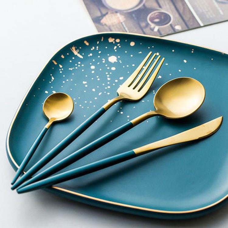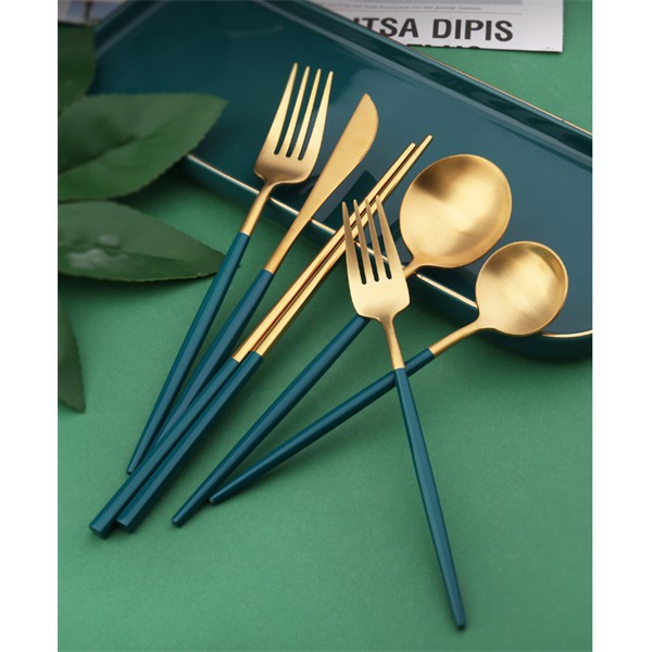 Set 4 món dao, dĩa, thìa đũa – inox mạ vàng cao cấp - phong cách Âu [Phụ kiện bàn ăn sang trọng]