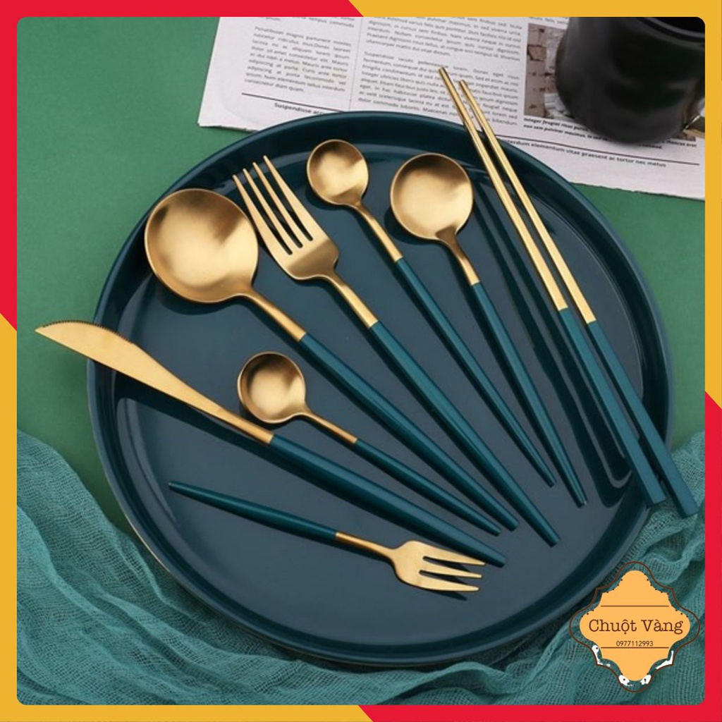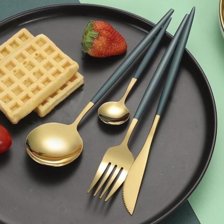 Nhà cửa & Đời sống > Bộ đồ bàn ăn > Bộ dao kéo || Set 4 món dao, dĩa, thìa – inox mạ vàng cao cấp - phong cách hoàng giaCòn hàng