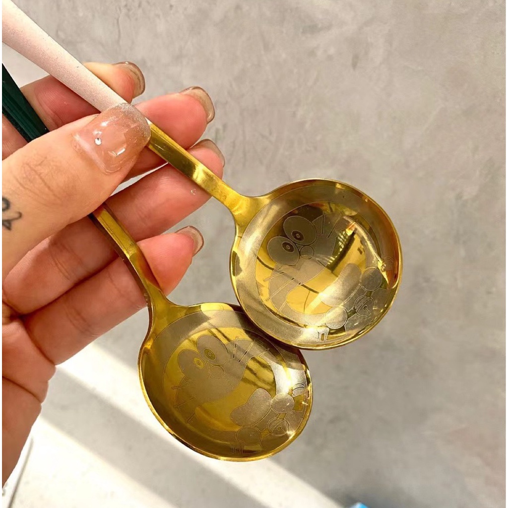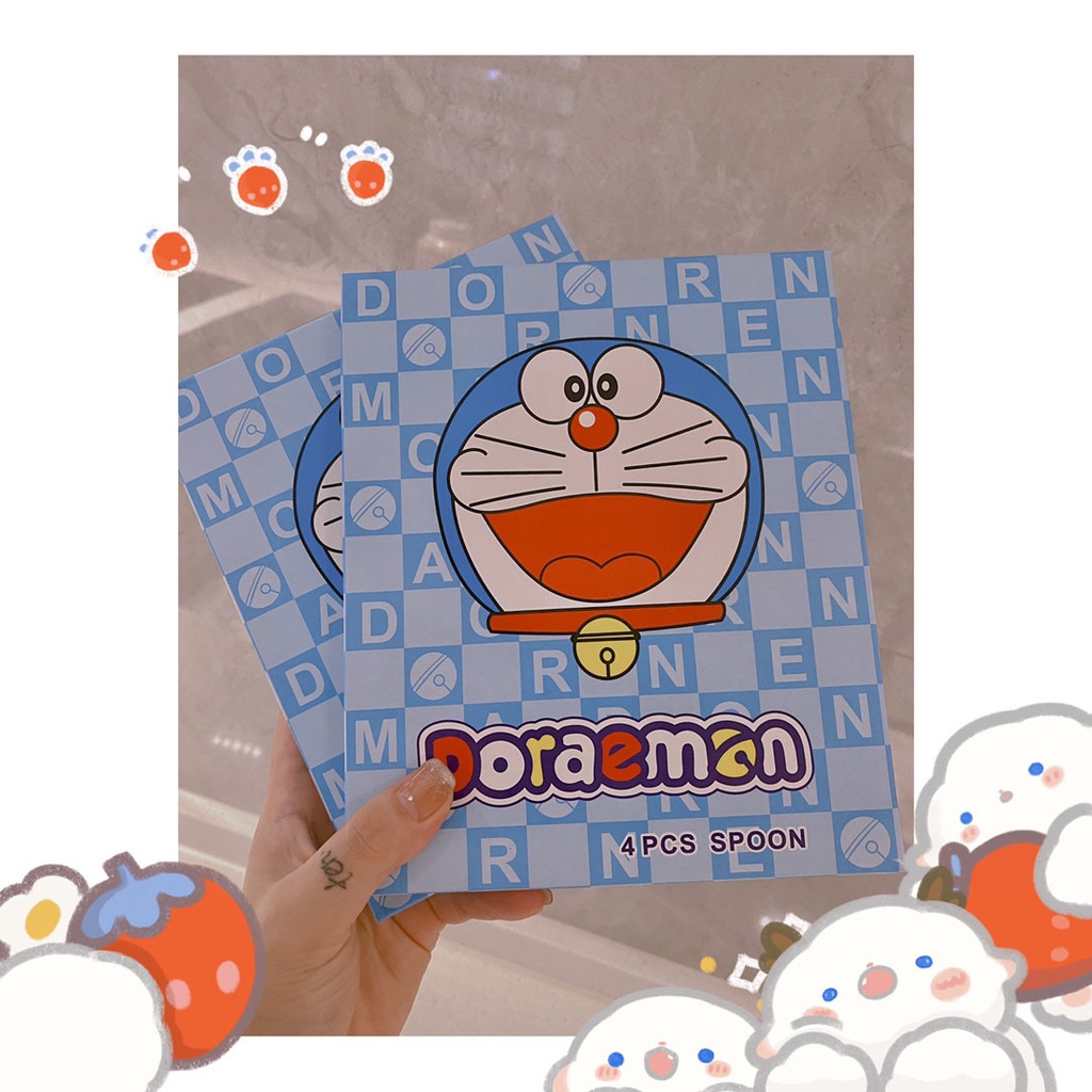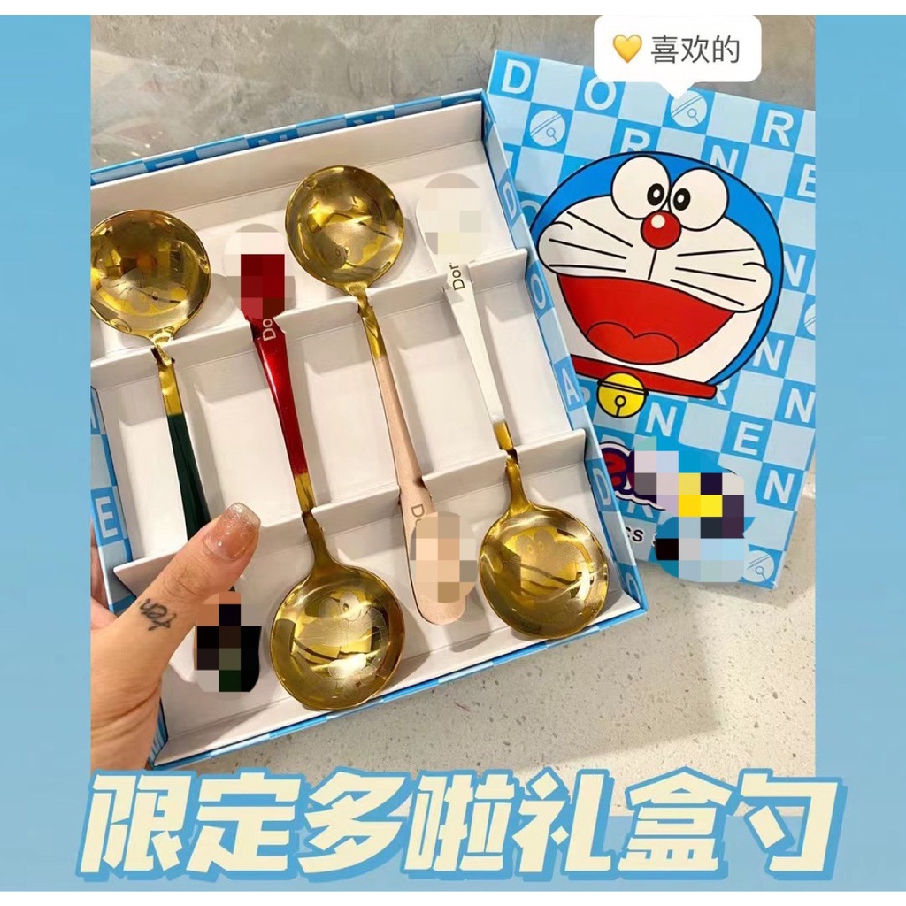 Nhà cửa & Đời sống > Bộ đồ bàn ăn > Dĩa || Set 4 muỗng Doremon inox mạ vàng kèm vỏ hộp xinh xắn bộ thìa inox mạ vàng khắc hình Doremon đáng yêuCòn hàng