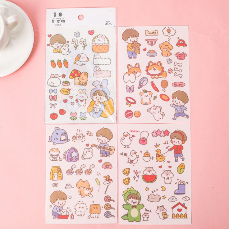 Văn Phòng Phẩm > Sổ & Giấy Các Loại > Giấy In || Set 4 Sticker cute nhãn dán dễ thương chủ đề cô gái đơn giản A-55Còn hàng