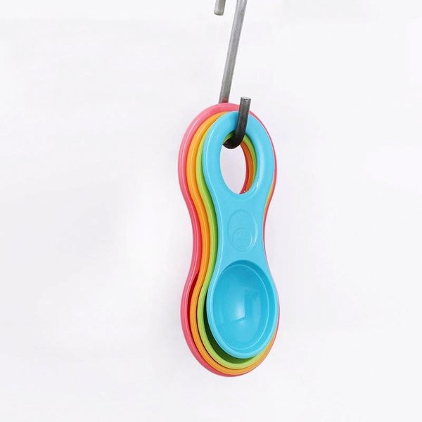 - Kích thước: Gồm 4 thìa dung tích 15ml, 10ml, 7.5ml, 5ml. Thiết kế 1 đầu dùng để đong gia vị, 1 đầu có lỗ có thể treo lên các loại móc nhà bếp.