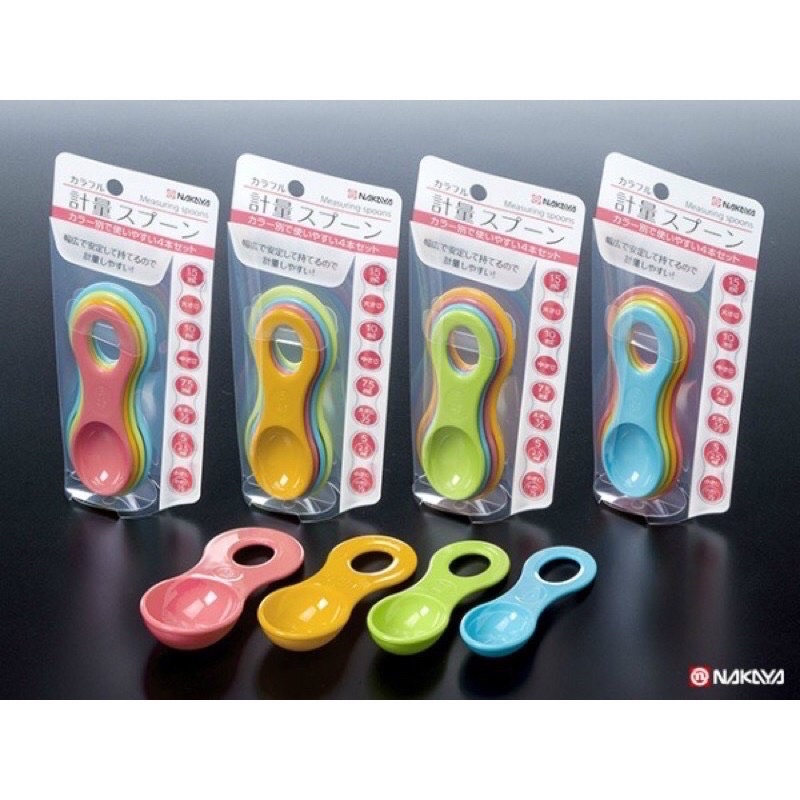 Set 4 thìa đong gia vị màu sắc- Chất liệu: nhựa cao cấp. - Kích thước: Gồm 4 thìa dung tích 15ml, 10ml, 7.5ml, 5ml. Thiết kế 1 đầu dùng để đong gia vị, 1 đầu có lỗ có thể treo lên các loại móc nhà bếp. - Công dụng: đong đo chính xác các loại thực phẩm theo dung tích yêu cầu. - Hàng nhập từ Nhật. Sản xuất tại Nhật.
