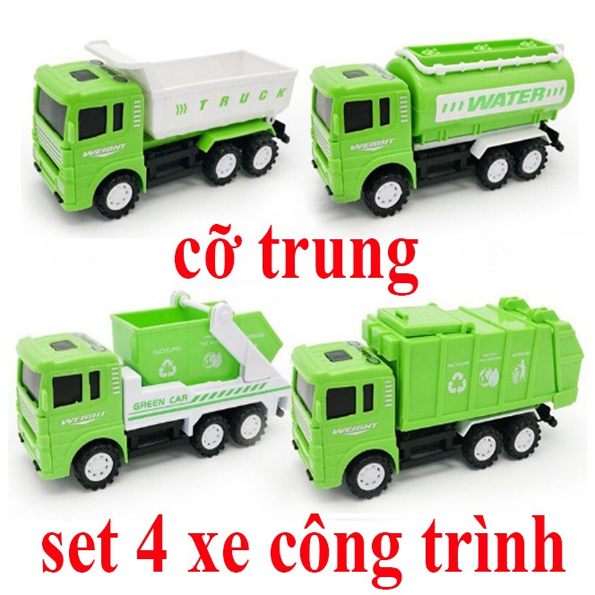 Set 4 xe công trình màu xanh cho bé, được làm tự nhựa chắc chắn, an toàn.Set xe CỠ TRUNG NHỰA CỨNG CHẮC CHẮN , giúp bảo vệ sản phẩm một cách tốt nhất.