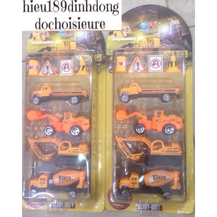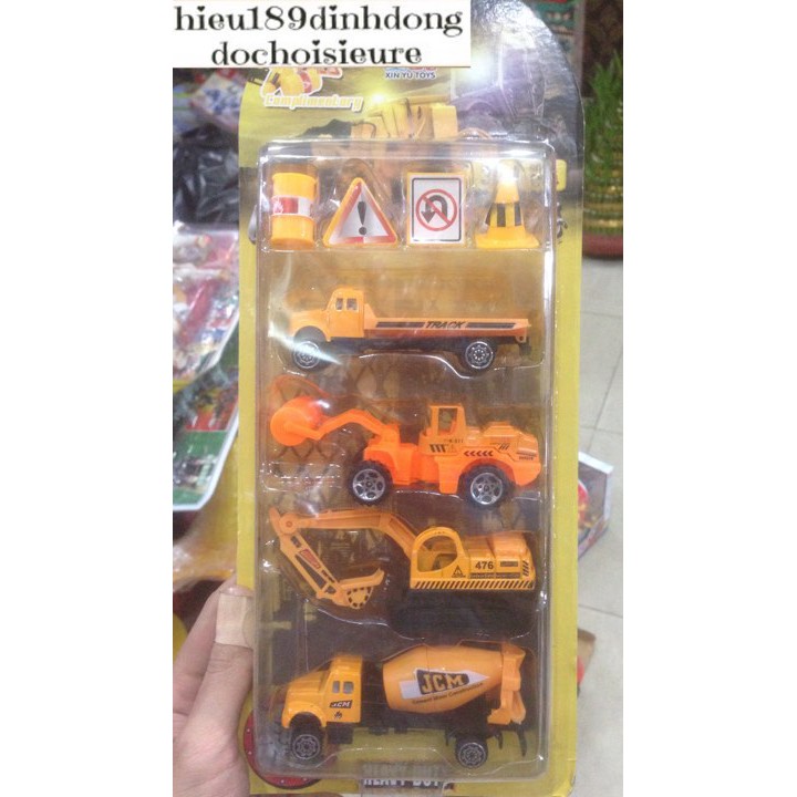 Sản phẩm là 4 chiếc xe công trình dài 9.5 cm làm bằng sắt kết hợp các chi tiết chuyển động được bằng nhựa. Là loại xe rẻ chất lượng phù hợp với giá tiền và các biển báo bằng nhựaĐịa chỉ: 189 Đình Đông - Lê Chân - Hải Phòng