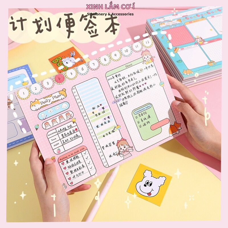 Set 48 Bảng Kế Hoạch Hàng Tuần, Giấy Ghi Chú, Planner Siêu Xinh [Xinh Lắm Cơ Í]