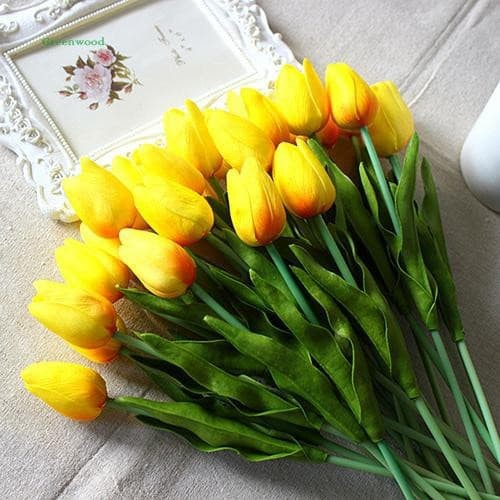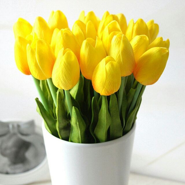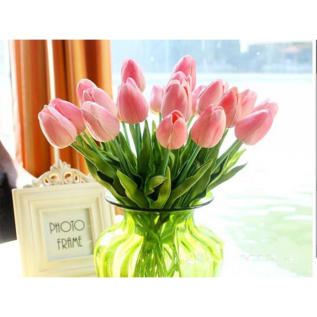 Hoa Tulip là loài hoa đẹp du nhập từ phương Tây và đang được ưa chuộng tại Việt Nam. Tuy nhiên để sở hữu một bó hoa tulip tươi thật không hề đơn giản mà chúng cũng chỉ để được vài ngày thôi.Sự ra đời của Hoa Tulip nhân tạo chất liệu silicon giống y hoa thật sẽ là lựa chọn tuyệt vời giá rẻ giúp bạn có Đạo cụ chụp ảnh sản phẩm tuyệt vời hay trang trí không gian gia đình - bàn ăn,nhà bếp, quán cafe trà sữa .....Trang trí tủ bằng trang điểm giá sách hoặc tô điểm không gian cửa hàng - bàn tiệc