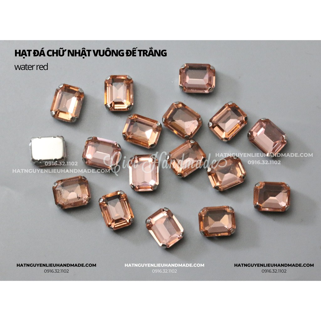 Hạt đá chữ nhật vuông đế trắng có lỗ để khâu, hạt đá bắt sáng cao cấp, đế TRẮNG BẠC có lỗ khâu dùng để khâu đính váy, quần áo, phụ kiện thời trang, làm đồ handmade,....Size : 8*10mm - Túi 10 hạt