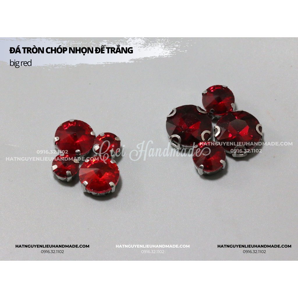 Chi tiết sản phẩm :Loại : Đá pha lê tròn chóp nhọn, đế trắng có lỗ khâu dùng để khâu đính váy, quần áo, phụ kiện thời trang, làm đồ handmade,....