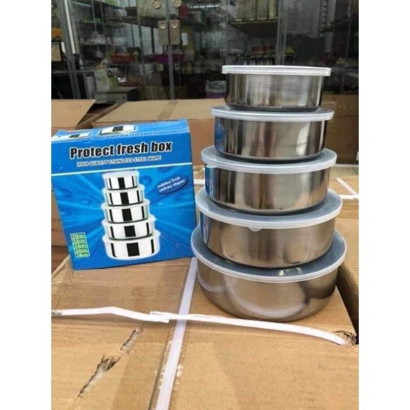 Nhà cửa & Đời sống > Bộ đồ bàn ăn > Tô || Set 5 bát inox có nắp đậy loại đẹp AMCòn hàng